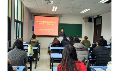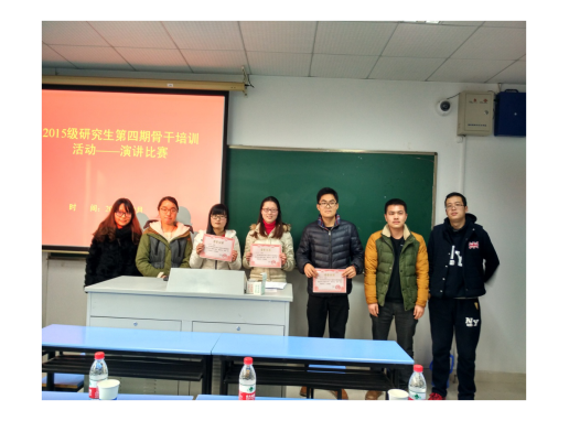 为了进一步丰富研究生的课余生活,增强研究生骨干的工作能力。12月30日下午两点,杏色 在杏色 B202举办了的2015届研究生第四期骨干培训活动—演讲比赛。