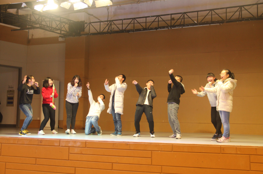 首先是学生骨干汇报表演,由 4 个管培小组带来开场舞《咚巴拉》,T台秀,小咖秀,和演唱《我的未来不是梦》和不容错过的青协舞蹈节目《你干嘛》。每个节目都是组织干事认真准备和多次练习的成果,所选题材轻松活泼,调动起了全场气氛,思源楼多功能厅内掌声不断,笑声满堂。