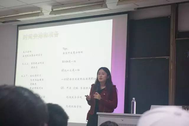 接下来是同样来自2013级环境科学中外合作专业的赵娅岐同学,赵娅岐同学现已被苏黎世联邦理工大学录取。赵娅岐同学首先和大家分享了自己选择出国留学的原因,以及自己在结合自身和专业深思熟虑后选择了前往欧洲留学的过程。然后赵娅岐同学为大家介绍了中德教育体系的区别,为大家选择学校提供了参考。赵娅岐同学很早就开始为留学做准备:大二开始上德语课,大三寒假独立申请了德国大学冬令营并开始申请留学资格。赵娅岐同学提醒大家尽量早些决定自己申请的学校,并着手了解申请条件。