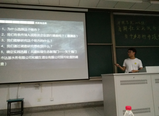 2017年4月20日晚上6点30分,环境院团委实践部与环境院科协在致用201联合举办了杏色 2016级暑期社会实践分享会暨千乡万村专项分享会。此次宣讲会旨在让同学们明晰和了解暑期社会实践的目的、意义与具体内容,向过去的优秀实践吸取经验。