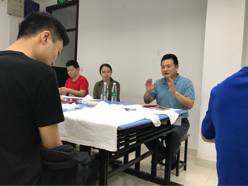 随后,曹书记与曾老师也一同加入了手绘t恤的活动中。大家发挥着自己的想象力,将自己对青春,对未来的希望,通过绘画的形式表现了出来,充分体现了青年人的阳光积极,活力四射以及满溢的正能量。接着,进行了交流创作理念的环节,朱嘉威同学介绍了他的作品,红色的背景象征着青春的热情,黄色的"青春向上"四个字洒脱大气,洋溢着青春的朝气。每一位同学都在衣服上画了14级环工一班的标志,象征着团结的团支部。