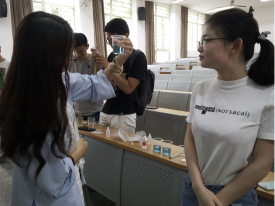 讲解过后,大家进行分组,分别对不同水源进行相应的测定分析。