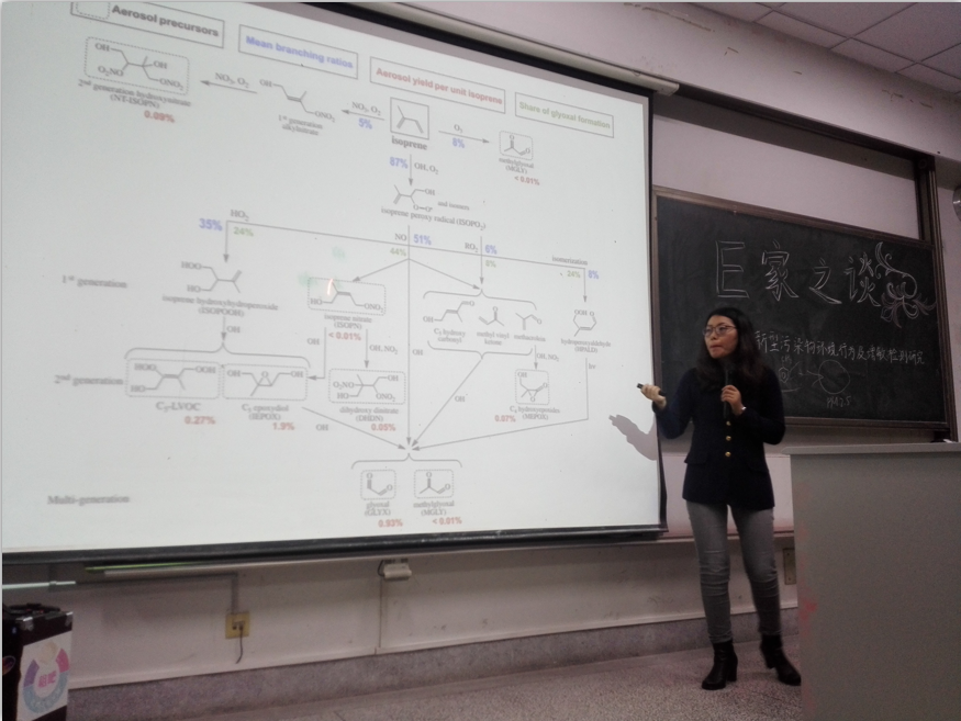 接着,白教授主要从纳米污染物环境行为、新兴污染物环境行为及典型污染物催化降解等多个方面为同学们详尽地介绍了二次有机污染物及多种环境污染行为,具体为同学们列举了检测电极、检测传感器及环境监测的多种方法。