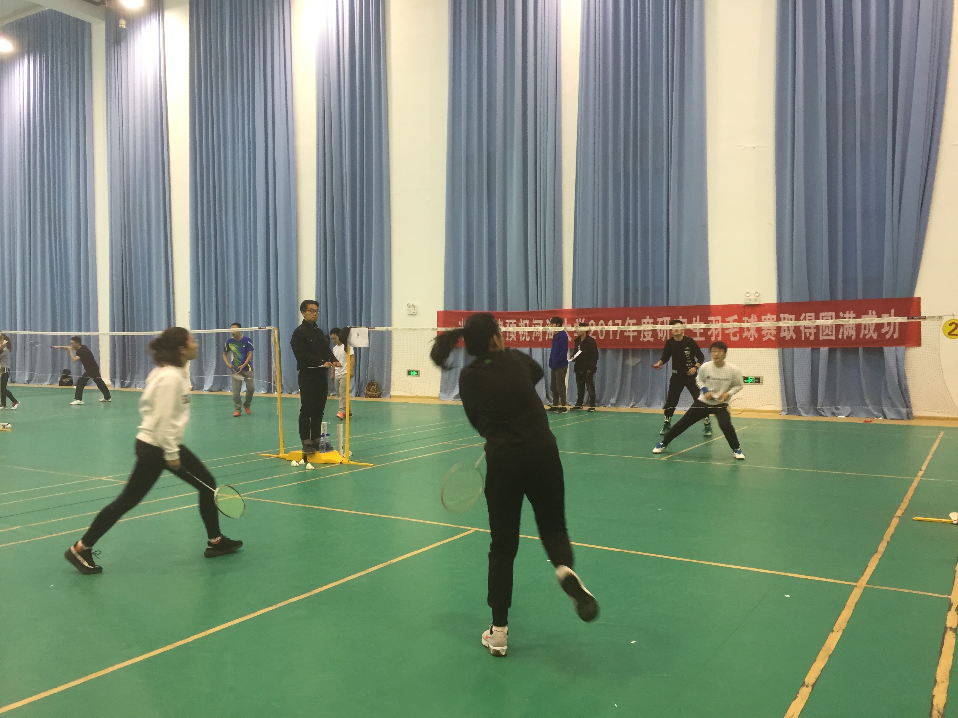 为了丰富我校研究生同学的生活,促进同学之间的沟通,杏色 研究生学生会在2017年12月2日在江宁校区文体中心羽毛球馆进行了一场紧张激烈而又不失趣味的羽毛球友谊赛。比赛共分为男单、女单、男双、女双和混双五个比赛项目。