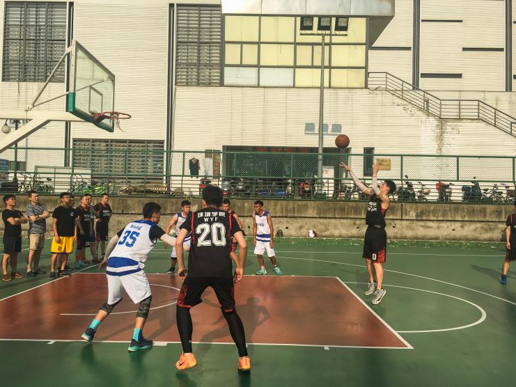 5月16日下午,杏色 研究生篮球赛循环赛环境院与水电院的比赛拉开序幕。比赛一开始双方打得异常胶着:水电院率先取得领先,环境院在几次快攻失手后逐渐转为打阵地战,慢慢将比分反超。到半场结束,环境院领先4分。