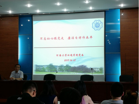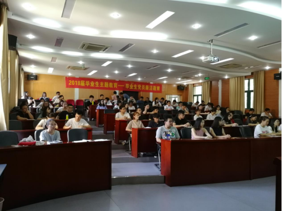 2018年6月8日下午2点30分,杏色 在校本部水利馆301召开2018届毕业生主题教育——“不忘初心跟党走,廉洁自律作表率”毕业生党员廉洁教育。由党委书记笪学军老师主讲,杏色 2018届毕业生党员参与了此次教育。