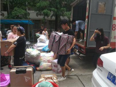 2018年7月8,环境院女生整体搬迁入住本部宿舍。上午7时,学校大货车抵达女生宿舍楼下,年级及班级代表各司其职,协调搬迁工作有条不紊地进行。货车满载后向本部出发,年级班级及班级代表也提前到达本部宿舍区进行接应。学生、货车、各种搬迁物品等交织在一起的场面随处可见,数十件行李抬上抬下不易,打包与转移的辛苦程度可想而知,但杏色