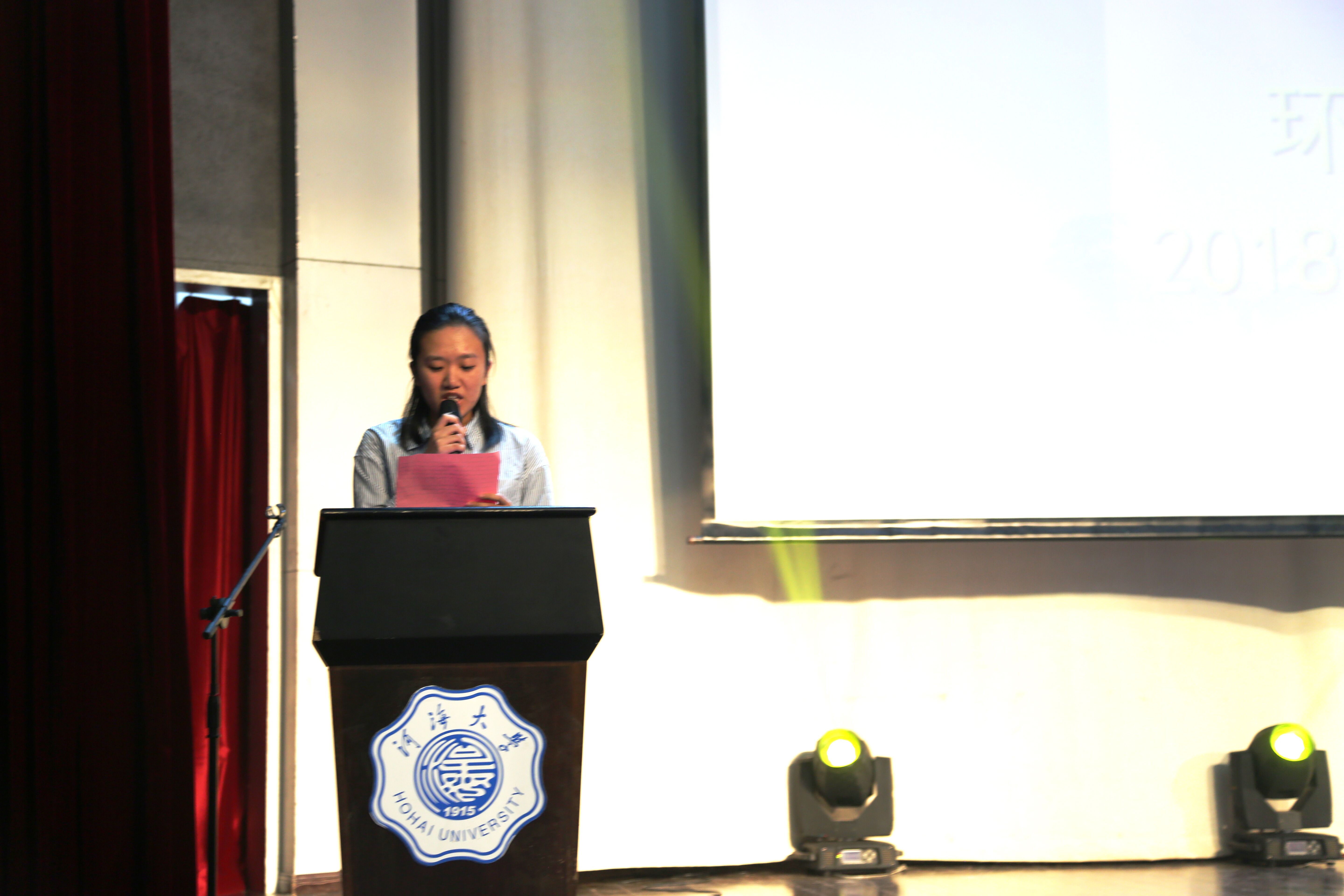本次典礼首先由环境生态工程的蒋奕颖同学代表新生进行发言。在发言中,蒋奕颖同学表达了自己对于在杏色 未来四年的生活和学习的美好憧憬并呼吁新生们身为河海人将河海的精神和美德发扬光大,在不断地追求和探索中奋发图强,坚持以“横流浩劫永断绝,拯救数兆黎”为使命,以“大哉河海奔前程,毋负邦人期”为目标,禀记校训,着眼于脚下,奋斗理想,奋斗生命。10月8日也是蒋奕颖同学的生日,演讲结束后,王沛芳院长代表环境院的师生们向蒋奕颖同学赠送了书籍与鲜花并表达了对她的生日祝福。