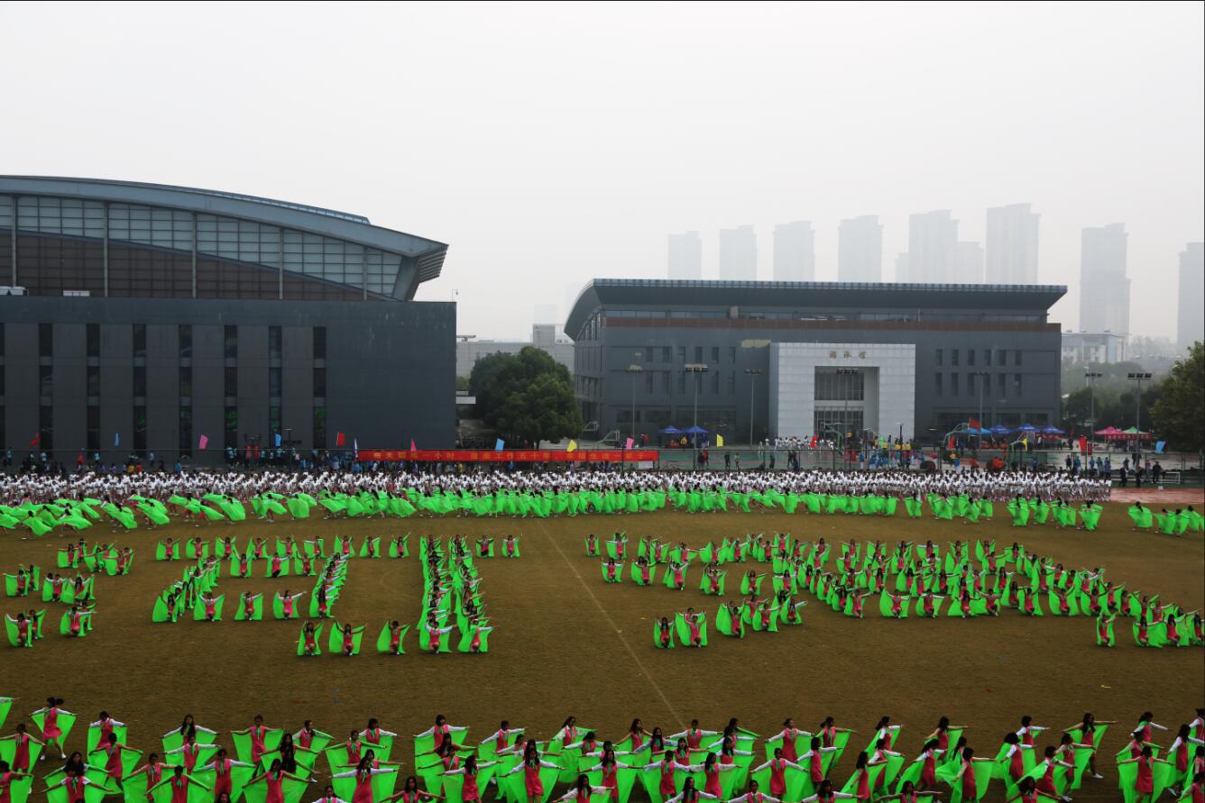 开幕式上,一千余名2018级本科新生表演了大型团体操《新的春天》,我院共有175人参加,他们不惧辛劳,每天晨起训练,也为这次精彩表演贡献出了自己的力量,他们代表着环境学子奋发向上的拼搏精神,彰显了杏色 团结一心的合作精神,为我院增光添彩,是杏色 的骄傲!团体操气势恢宏节奏明快,充分展示了河海学子青春洋溢的活力、朝气蓬勃的精神风貌、团结奋发的凝聚力和昂扬向上的风采,把开幕式现场气氛推向了高潮。第一场是由女子方阵带来活力四射、激情昂扬的《美丽的中国梦》,歌曲感染力十足,女子方阵也配合默契,她们一袭绿衣翩翩起舞恰似一片绿色的波浪汹涌翻滚,柔情万丈。接着由男子方阵带来的《奋斗年华》更是让水之子们深深的感受到了身为一名河海人的骄傲与自豪,在心中暗暗下定决心定要在最美的青春岁月中创造属于我们自己的芳华!最后由全体队员共同表演激情万丈的《跨越巅峰》,在今天这个幸福美满的日子里,让我们共同祝福我们亲爱的祖国走向繁荣富强!