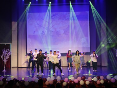 由吴璟涵、邓梦婷、李星雨、罗钧泽带来的歌舞表演《Forever young》,一出场便赢得阵阵掌声。罗钧泽同学深沉迷人的嗓音,三位女生优美的舞蹈加上有些醉人的灯光,让人不觉慢慢沉醉其中。突然灯光一闪,音乐一变,缓慢的音乐变换成动感的拉丁,场下不是传来阵阵欢呼声,女生们迷人的身姿在灯光下变换,引得大家纷纷挥舞手中的荧光棒,积极和他们互动。动感的音乐与舞蹈将现场的气氛推向高潮,台下的同学们不再像开始那样拘谨,开始积极和台上互动。