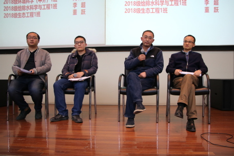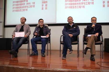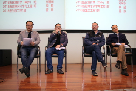 在中间的提问环节,有同学提出问题:“如果感兴趣的活动与课程冲突,该不该请假去参加活动”,刘晓东导师给出了自己的看法:可以从对自己的重要性这一方面来决策。并就如何委婉地拒绝别人给同学们一些建议。吴东海导师就同学“班级活动有个别同学不积极参与,该怎么样处理”的问题,做出了回答:可以发挥班委带头人的作用,用集体的力量来改变并带动个别同学,并与他们多交流沟通。最后一位同学向导师们提问“环境科学专业的发展方向和就业前景如何。”导师们肯定了杏色 环境专业的实力,描述了这一专业出国比例高,近年来整体素质稳步上升的情况,安抚了同学对以后发展和就业的紧张心情。