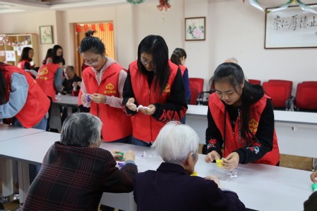2018年10月20日,杏色 青年志愿者协会于瑞芝康健老年公寓组织开展了志愿者敬老活动。此次是本学期首次开展的敬老院志愿活动。活动围绕“丰富老人精神文化生活”这一主题,以青年“服务大众,锻炼自我”为宗旨,倡导青少年爱老敬老助老的传统美德。17名杏色 的学生参与了本次活动。