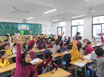 一切准备就绪,讲师就开始上课了。首先,讲师就PPT上准备好的有关垃圾分类基本知识的问题进行提问,小朋友们积极表现,纷纷举起小手期待回答问题,助教志愿者也给答对问题的小朋友分发奖品。问题结束之后,讲师便趁机引导向小朋友们讲解更多有关垃圾分类的知识及方法,也呼吁大家向自己的家人传递垃圾分类的观念。