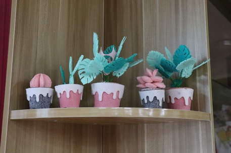 美丽的手工盆栽完成后,其中一些被赠与了老人们,一些被摆放在老人们休息室的一角。相信每当老人们看到它们,一定会回想起与志愿者们的愉快回忆。