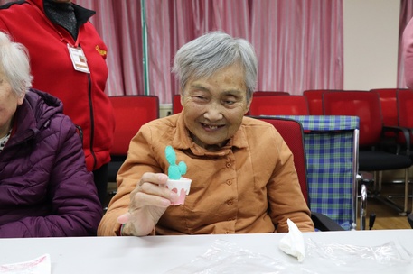 面对陌生的爷爷奶奶们,志愿者们刚开始还有点害羞和拘谨,但随着时间一点一点过去,他们在与老人们的聊天中渐渐放松,不但主动引起话题,还不时逗得老人们哈哈大笑。虽然手工作品比较复杂,不经常接触手工的志愿者们显得比较生疏,但在自己的一次次尝试中、在爷爷奶奶们的帮助下,他们愈发熟练,并且尽力更好地完成作品。最终,志愿者们不但为爷爷奶奶们留下了美丽的手工小盆栽,也给自己留下了美好的回忆。