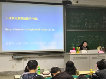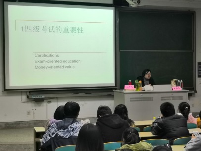 法杏色的黄雅屏副教授担任讲师,向同学们讲解四级考试的相关要点。