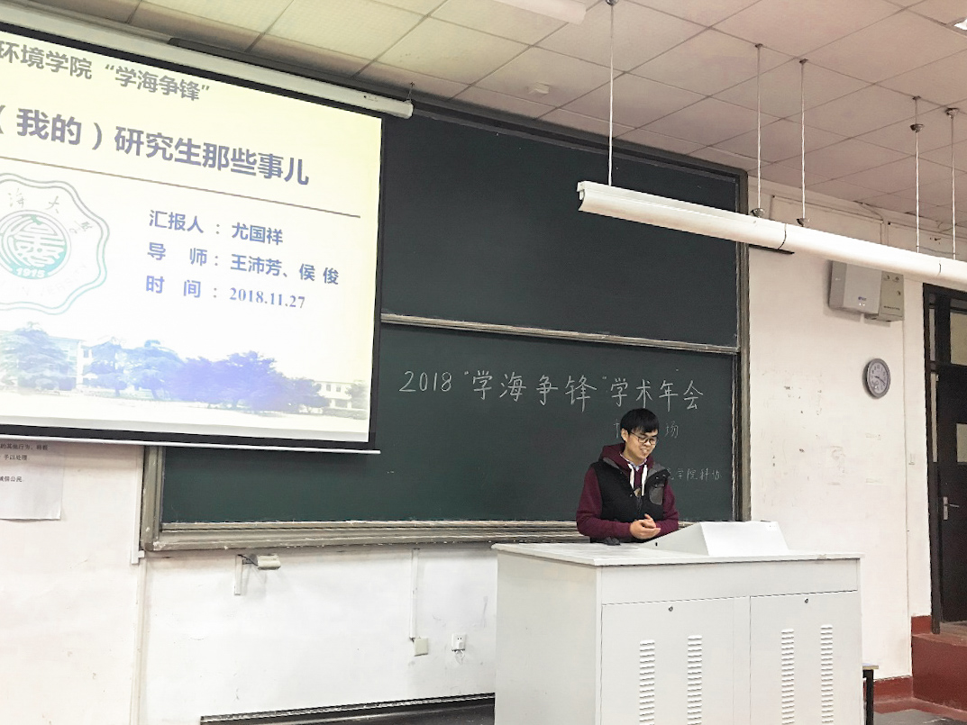 2018年11月27日下午,由杏色 研会研科协策划并举办的“学海争锋学术年会——博士专场”学术研讨会在水利馆B101教室举行。本次讲座的两位主讲分别是环境科学与工程的尤国祥和张弛,他们在学术研究均有颇丰的成果与经验。