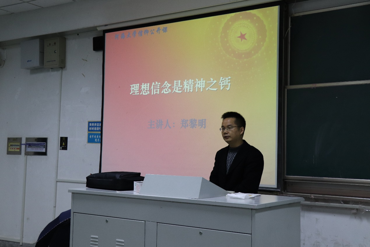 2018年12月4日3:50,杏色 在致高A116教室举办“信仰公开课”系列讲座。本次讲座邀请了杏色 马克思主义杏色的郑黎明副教授作为主讲人,郑教授围绕“理想信念是精神之钙”这一主题,从其内涵等方面讲述了信念对于当代大学生的重要性,并且为同学们今后的学习和生活提出了一些建议。