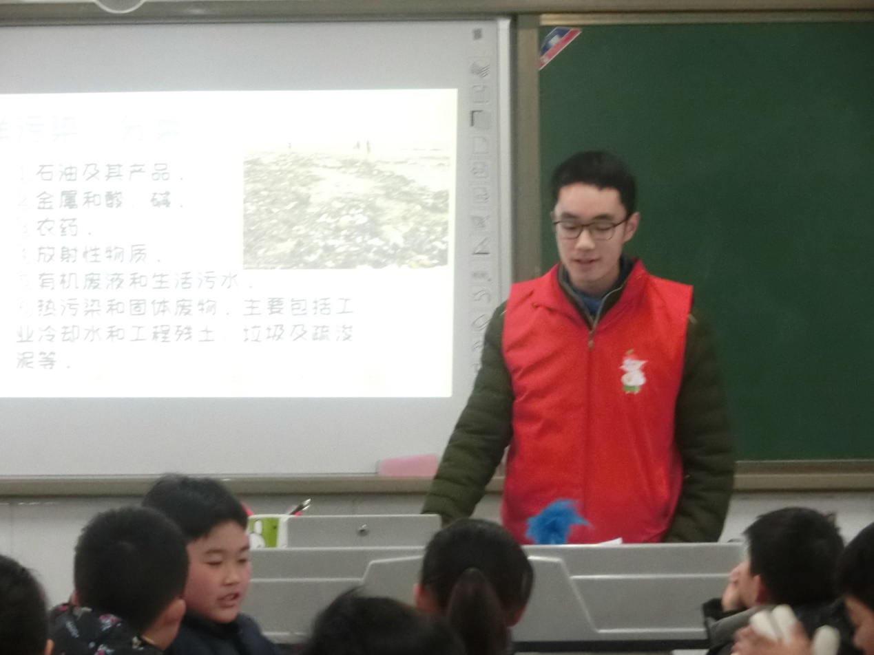 本次活动分为三个部分,第一部分是再学新知。近几十年,随着世界工业的发展,海洋的污染也日趋严重,使局部海域环境发生了很大变化,并有继续扩展的趋势。为了给小朋友们普及关于海洋污染的相关知识,志愿者们准备了ppt,从海洋污染的定义、分类等方面进行讲解。在上课过程中,志愿者们与小朋友们进行了提问和观点阐述等一系列的互动交流,课堂气氛十分活跃。在这一环节里小朋友们都掌握了不少关于海洋污染的知识。