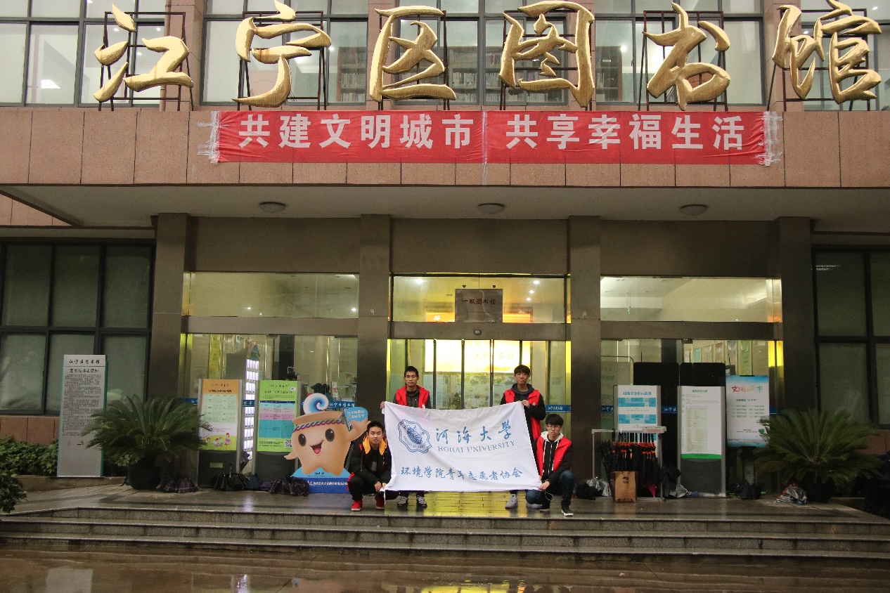2018年12月22日星期六,杏色 青年志愿者协会组织了本学期的第十期江宁区图书馆志愿活动。参加此次江宁区图书馆志愿活动的四名志愿者为:负责人邓永恒,志愿者刘凯,志愿者彭龙,志愿者沈嘉龙。于下午两点整,四人准时到达江宁区图书馆,并分为两个小组,分别负责一楼儿童图书区、二楼成人书籍区。