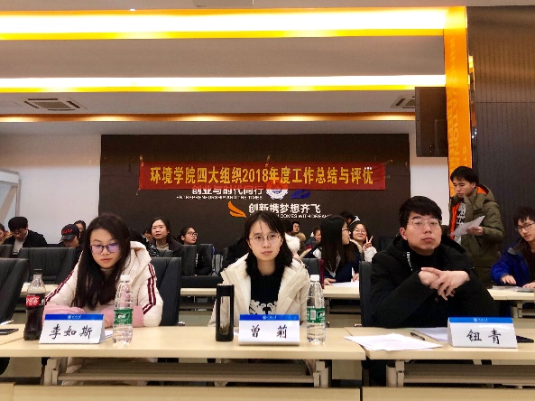 2019年1月10日下午2:30-5:00,环境院四大组织部门及干部评优答辩会在思源楼会议室如期举行。出席本次答辩会的有杏色 团委书记曾莉老师,2017级辅导员钮青老师以及2018级辅导员李如斯老师。