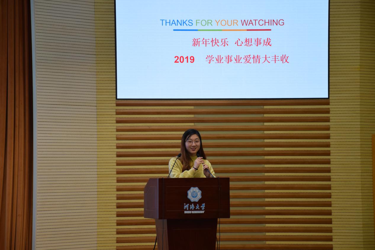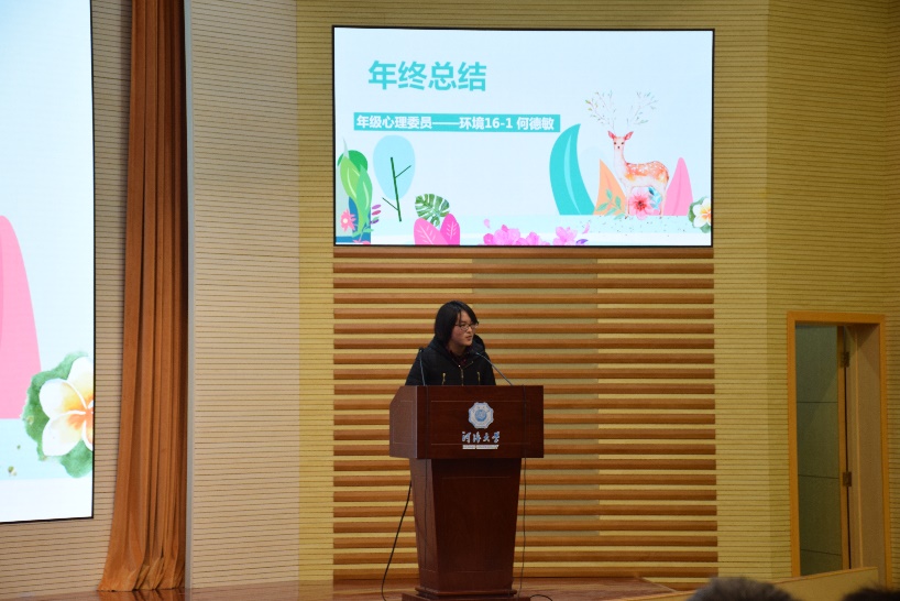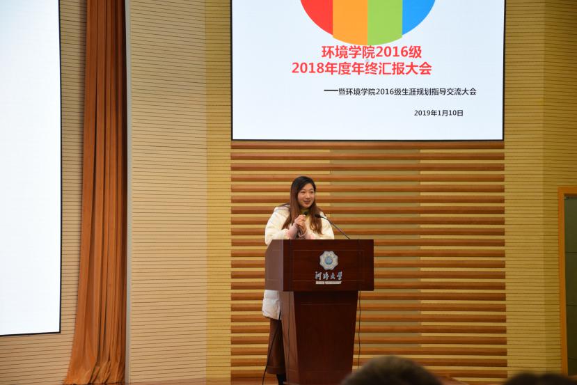 此次年级大会首先播放了一段主题为杏色 2016级本科生2018年度报告的视频,从学风建设、文体活动、精神建设等各方面进行总结。之后由辅导员金意倩老师进一步总结概括2018年各项事宜。