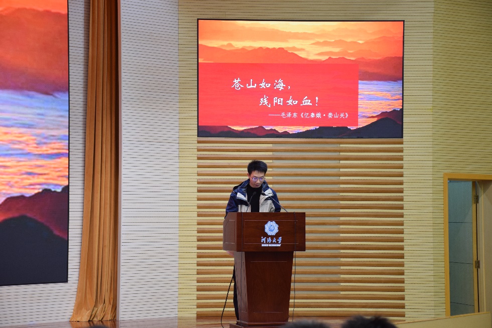 (左图为民族事务负责人冯昌龙进行汇报,右图为给排水二班班长王冬生进行班级事务汇报)