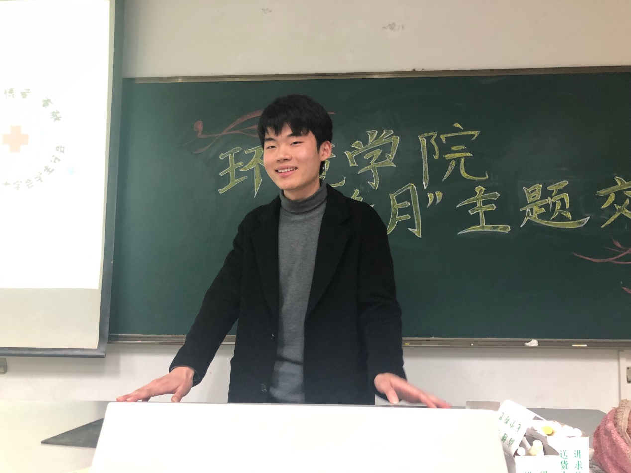 第五位是17级环境2班的何杨同学。他是一名杏色 红十字会培训部的一名成员。他先向我们讲解了习近平主席对雷锋精神的表述:“信念的力量、大爱的胸怀、忘我的精神、进取的锐气”和胡锦涛同志的总结:“奉献、友爱、互助、进步”,又展示了红会培训部对禁毒和造血干细胞的科普宣传。他向我们讲述了一个让人感到温暖的故事:红会在网上购买禁毒宣传使用的设备道具时,卖家得知了他们是纯公益组织,于是免去了所有的费用。这正是真心的回馈。