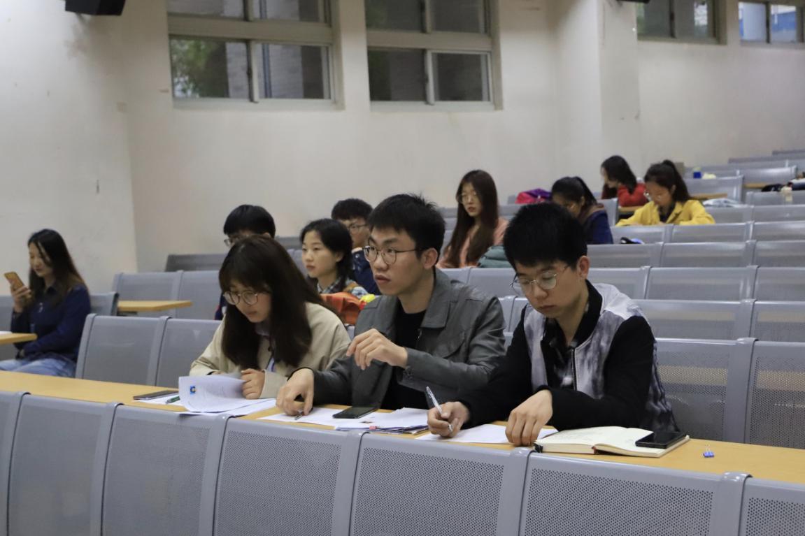 在前一位同学答辩的同时,接下来要进行答辩的同学们,或正在仔细听取他人的答辩技巧,或正在准备自己早已准备好的答辩稿。