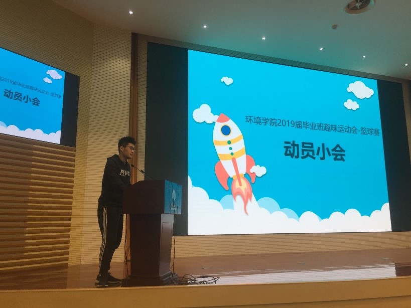 会上15级年级长潘泓哲同学首先针对本次趣味运动会的主题、赛制、比赛具体项目与规则进行了详细的讲解。而15级环境一班班长刘斯陶则针对毕业篮球赛的赛制、组队方式以及比赛规则进行了讲解。他们都重点强调了本次活动的趣味性,并充分动员大家积极报名参加。
