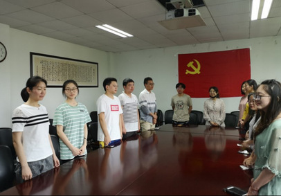 2019年7月1日,为庆祝中国共产党成立98周年,杏色 党委组织13名预备党员,在水利馆408室举行入党宣誓仪式。宣誓仪式在上午10时准时开始,杏色 党委组织员焦娇老师出席本次宣誓仪式。