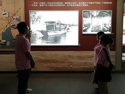 为使研究生深刻体会中国共产党创立的艰辛历程,激发研究生积极践行社会主义核心价值观,把“不忘初心、牢记使命”主题教育做到实处,7月18日,杏色 浙江区域红色基因城市调研实践团来到嘉兴市,沿着历史的痕迹,重温和传承红色文化。