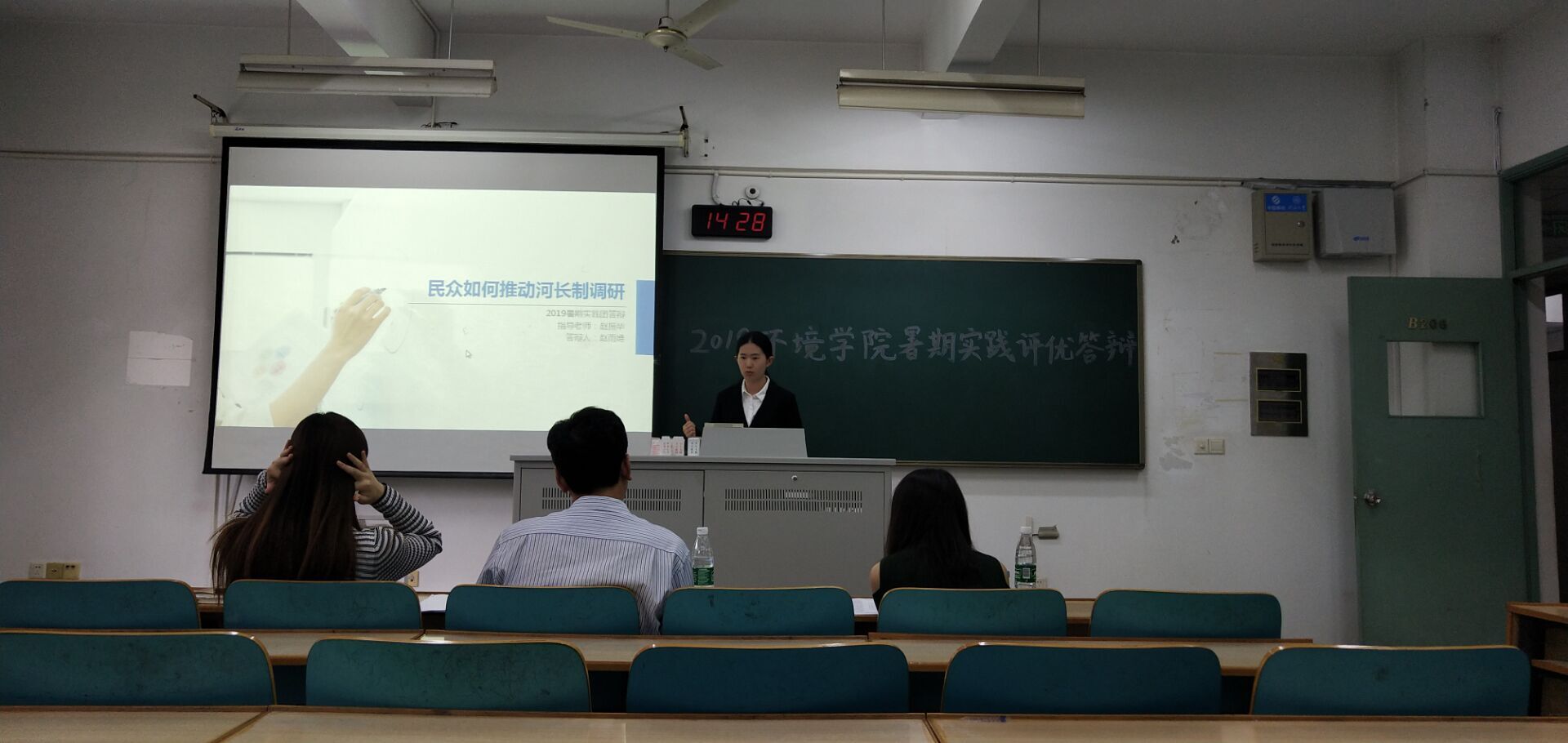 2019年9月3日下午14:00,杏色 2019年暑期实践评优答辩在致高楼b206举行。本次答辩邀请了环境科学与工程博士生导师杨汉培教授、2016级辅导员金意倩老师和2018级辅导员李如斯老师。