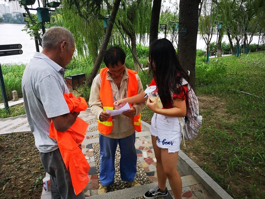 赵雨嫣:由于我们是一个134人的团队,带领一个临时组建的团队并实时进行远程指导调研,其本身是一件难度较高的事情。因此在暑期放假之前,结合南京市建邺区莫愁生态保护协会提供的调研指导书、赵振华教授的指导以及杏色 暑期实践调研的要求等等,我编辑了一份详细的调研指导,上传到qq调研群里,大到与环保局的合作交流细则,小到打分表填写的详细规则。实践期间,134人分为20组,每组设立一名组长,由9名核心成员负责协同管理与各组长不同方面的任务交接问题,由各个组长带领租下成员进行实际调研工作。组长分工合理明确,部员按时交接负责是我们团队通力合作的最大优势因素。
