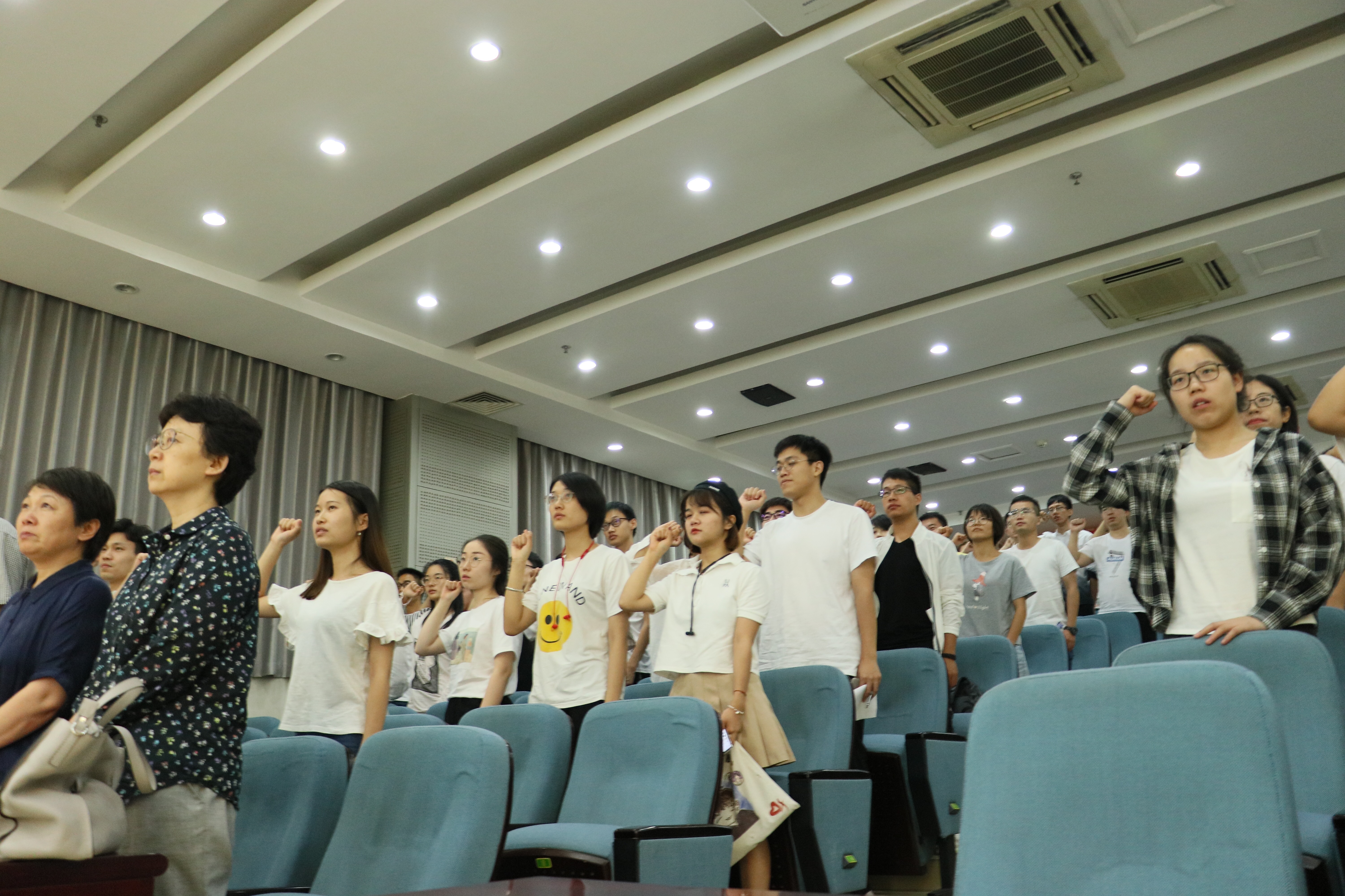 典礼伊始,王沛芳院长亲切地向同学们介绍了杏色的历史发展以及杏色在机构设置、师资队伍、科研平台、国际交流、人才培养等方面取得的成果。她对新同学提出了学而且有获及重视身体健康,规范学术行为,勇于直面挫折的三点寄语。随后在院党委书记笪学军的带领下,全体学生举右手握拳,做恪守学术道德宣誓。