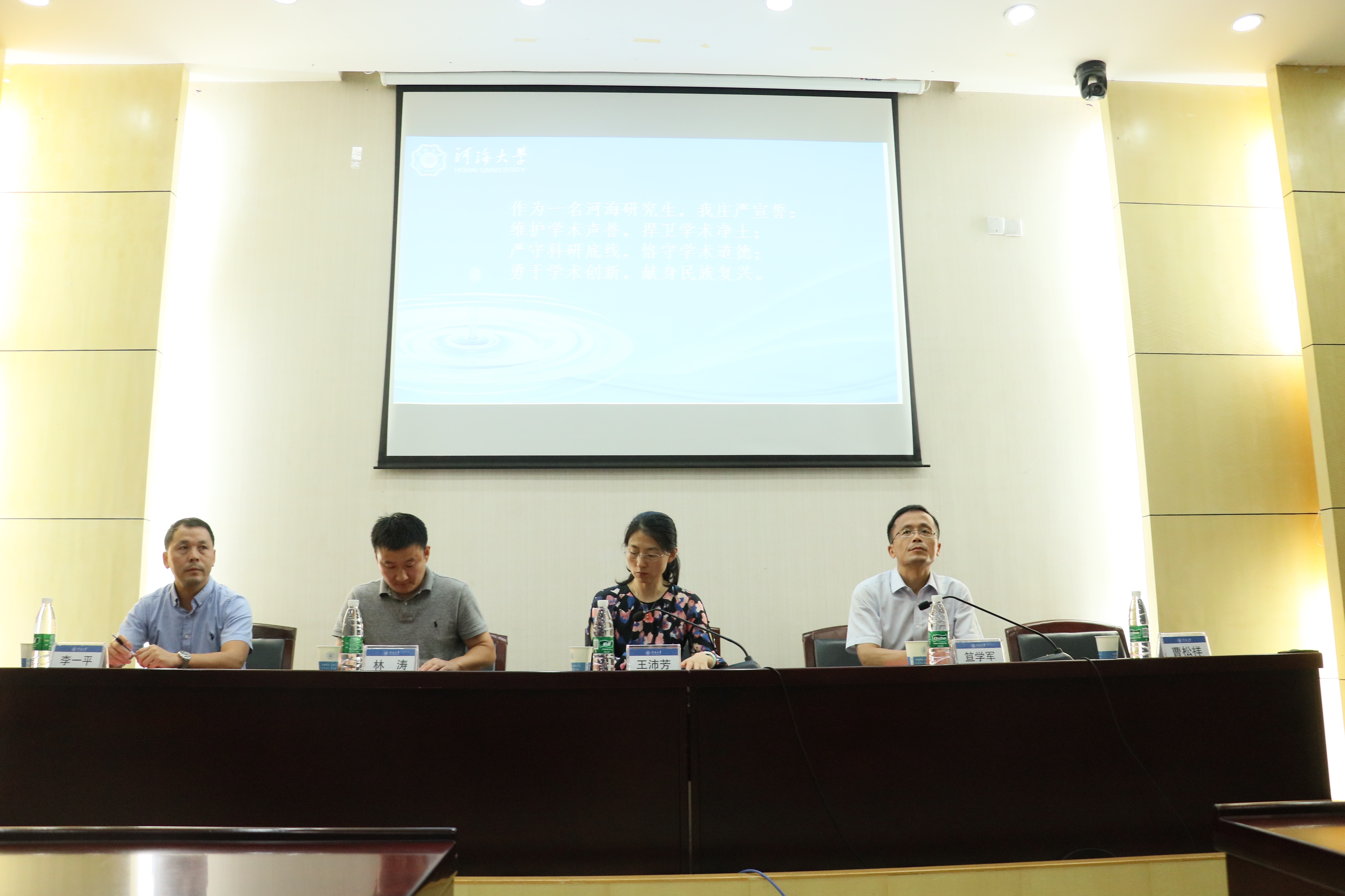 紫琅秋风过,晓月丹桂香。9月17日晚,我院隆重举行2019级研究生开学典礼暨入学教育仪式。院长王沛芳,院党委书记笪学军,副院长林涛,副院长李一平,院实验中心主任孙敏副,研究生教学秘书张文翠,办公室主任高臣,研究生辅导员罗荣荣等出席典礼。院党委副书记曹松祥主持开学典礼。