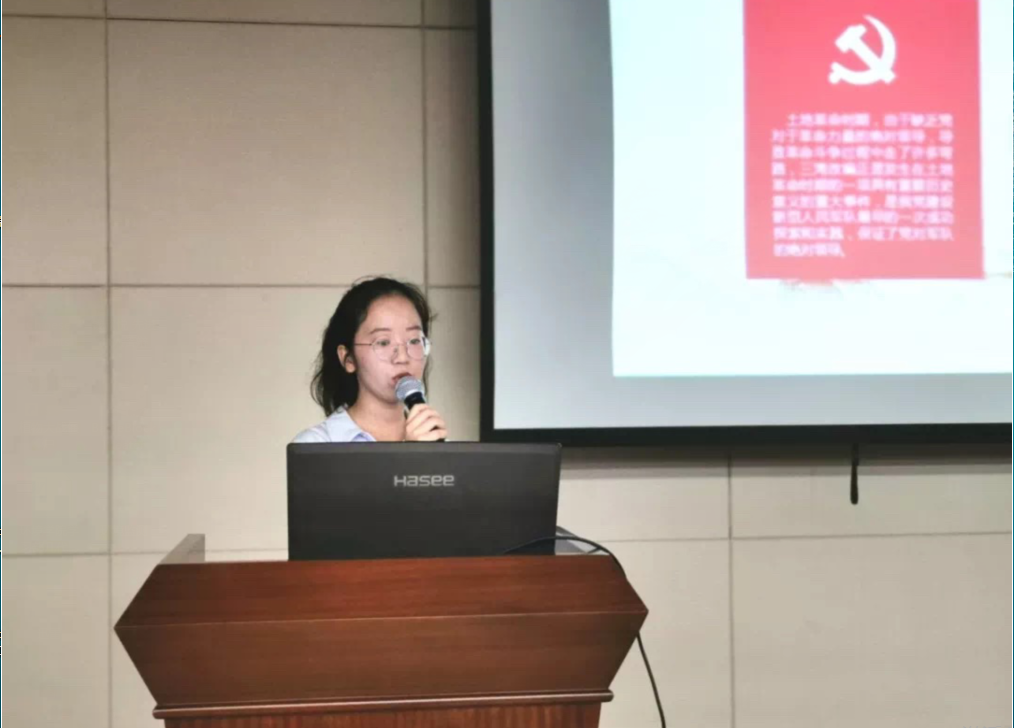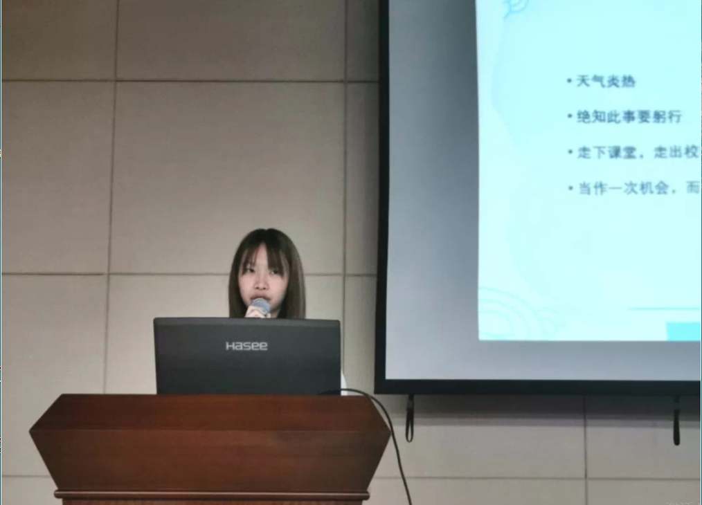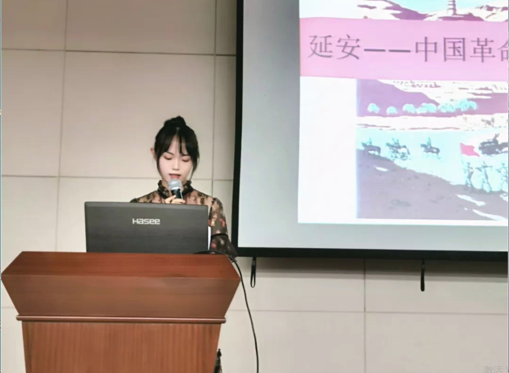 2017级的彭思佳分享了由杏色 2017级的20位同学在杏色 办公室主任高臣老师和2017级辅导员钮青老师的带领下开展的“赴延安重温红色革命道路”实践活动。他们认为作为新时代的大学生要牢记自己的使命,不断学习与提升自我,依靠学习走向未来。