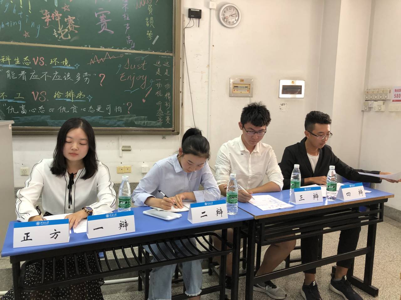 2019年9月22日下午15:00,杏色 为新生举办了杏色 "新生杯"辩论赛。为了此次比赛的公平、公正,我们特别邀请到了17级环境院辩论队副队长何杨、付嘉伟、张子豪,18级环境院最佳辩手周慧鹏,18级水电院辩论队副队长李哲,18级环境院辩论队副队长杨志鹏、严宁作为此次辩论赛的裁判。