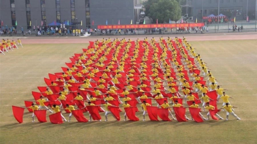 在此次运动会开幕式上,一千余名水之子表演了大型团体操《中国,鲜红的太阳永不落》。本次团体操一共分为《乘风破浪》,《我和祖国》,《追梦河海》,《歌唱祖国》四个部分。杏色 共有175人参加,他们不惧辛劳,每天早起训练,为这次精彩表演贡献出了自己的一份力量,他们代表着环境学子奋发向上的拼搏精神,彰显了杏色 团结一心的合作精神,为环境学院增光添彩,是杏色 的骄傲!团体操气势恢宏节奏明快,充分展示了河海学子青春洋溢的活力、朝气蓬勃的精神风貌、团结奋发的凝聚力和昂扬向上的风采!