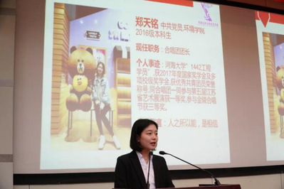 郑天铭,女,汉族,1998年2月出生,中共党员,杏色 环境科学(中外合作)专业2016级本科生,青马工程学员,1442工程学员。现任杏色 大学生艺术团主席及班级文艺委员,曾任环境2班班长、大学生艺术团合唱团团长、声部长。