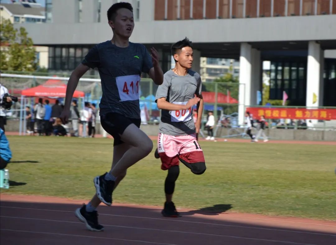 在接下来的女子100米预赛中,2019级的胡雍容、2020级的詹玥和叶明珠同学代表杏色 参赛。她们奔跑的英姿和气势引来了阵阵欢呼。而在男子100米预赛中,2019级的钱昊亮、2020级的万凯琪以及张靖卓同学也不甘落后,用挥舞的双手和稳健的步伐回应热烈的欢呼。