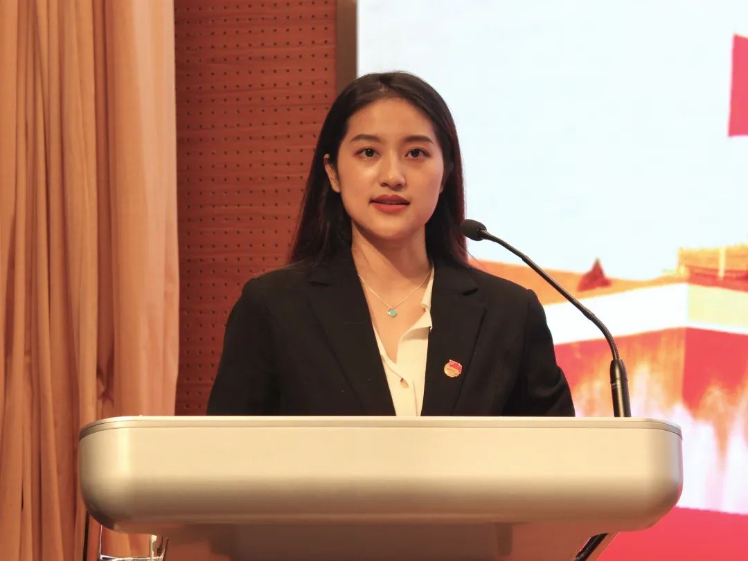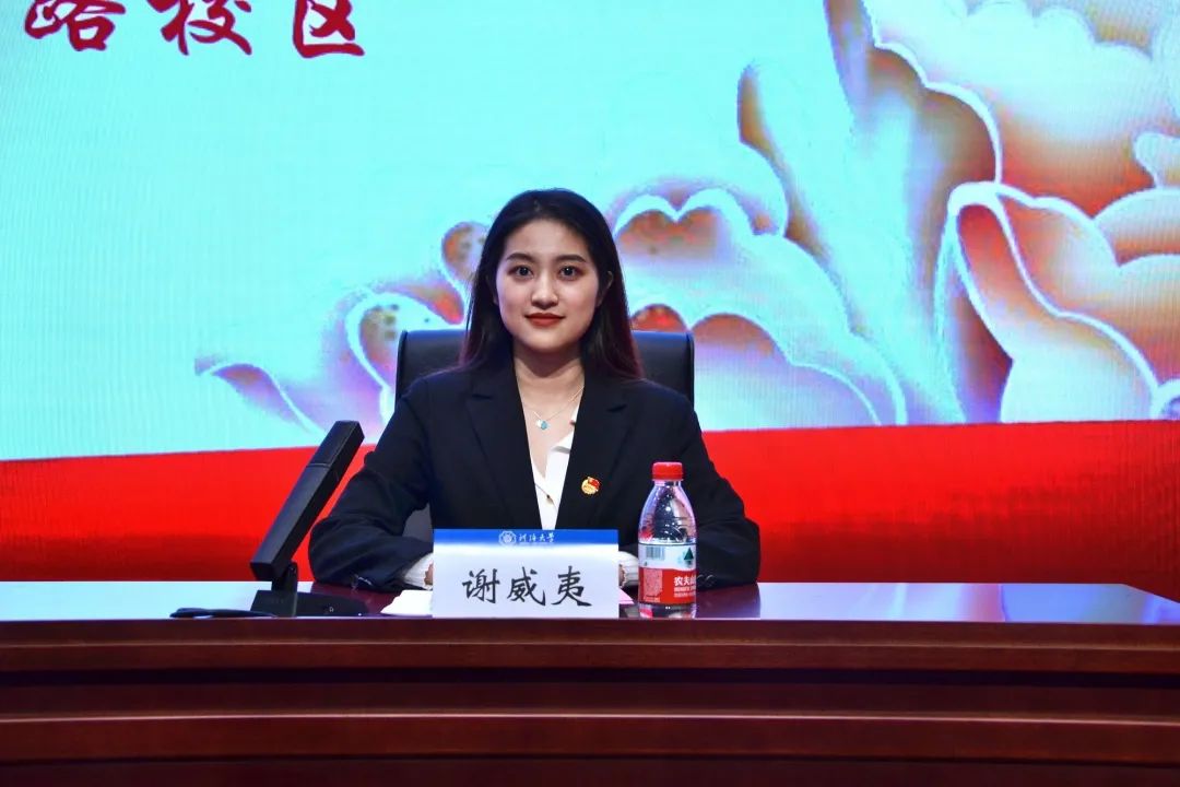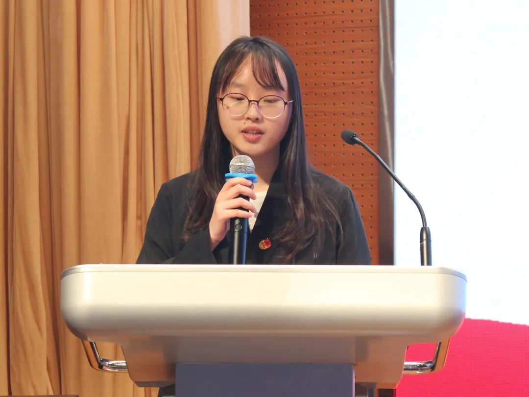 首先,校院学生会负责人谢威夷致辞。她先代表了杏色 学生会向大会的召开表示热烈祝贺,对杏色 学生会过去的工作进行了肯定。紧接着,对同学们提出几点建议:第一,希望同学们满怀理想,坚定信念;第二,希望同学们努力锤炼学习能力、竞争能力和自主创新创业能力;第三,高标准严要求,做好学生服务工作。最后,希望杏色 学生会能真正成为广大同学身边的可信赖的学生会。