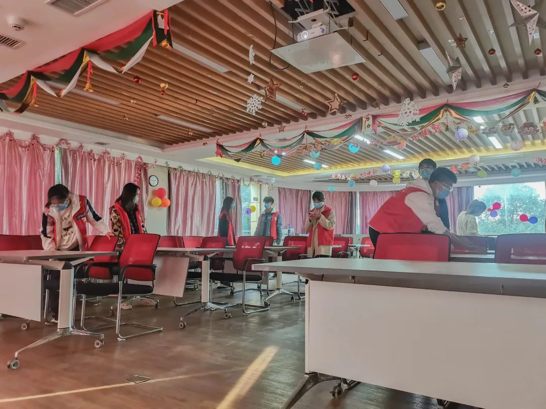 为了让老人们能拥有更好的观感,志愿者们来到之后便立即着手布置会场。