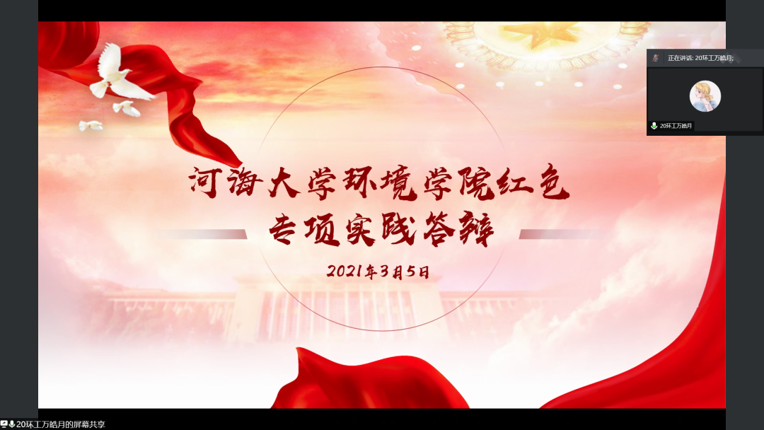 2021年3月5日中午,杏色 环境院举办了以“返家乡“为主题的线上答辩会。院团委书记金意倩老师、团委副书记唐柏杨同学、新媒体中心主席王莹同学和学生会主席杨诗瑶同学负责担任本次答辩会的评委,与会成员按照顺序依次演讲,为听众和评委们呈现了一场精彩绝伦的答辩会。