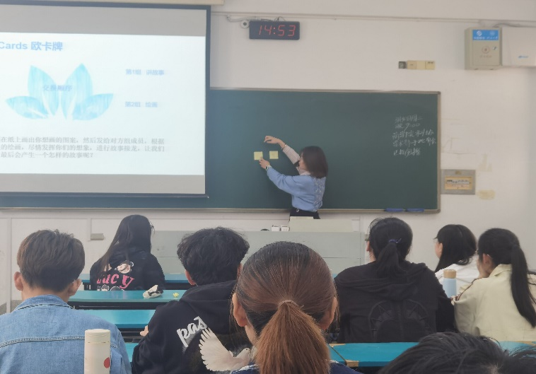 其次,通过趣味科普视频向同学们介绍焦虑产生的原因以及如何克服焦虑,让同学们深入了解心理学上的行为解释和铸就健康良好的心态的方法。引导同学们分享交流自己的心得,关注心理健康。组织大家参与到听歌识曲和OH Cards欧卡牌游戏中,促进班级同学之间的沟通交流,分享自己或身边的故事及成长体验。