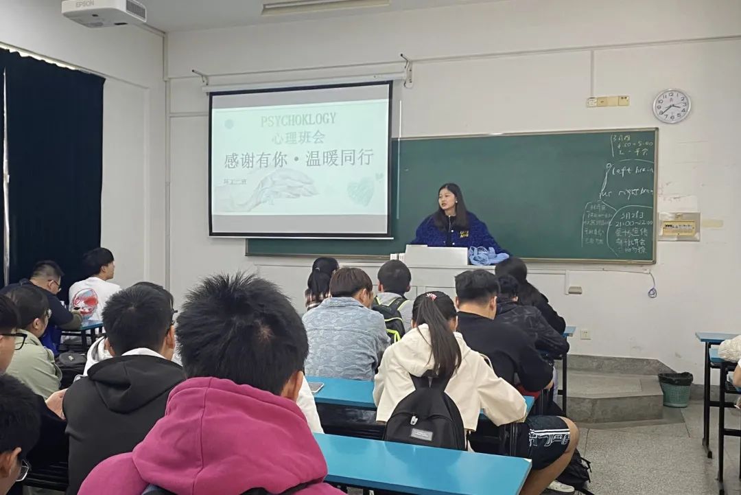最后,心理委员号召大家直面心理问题,并主动寻求帮助。此次班会旨在解决同学们的心理焦虑等问题,帮助同学们度过更快乐更健康的大学生活。