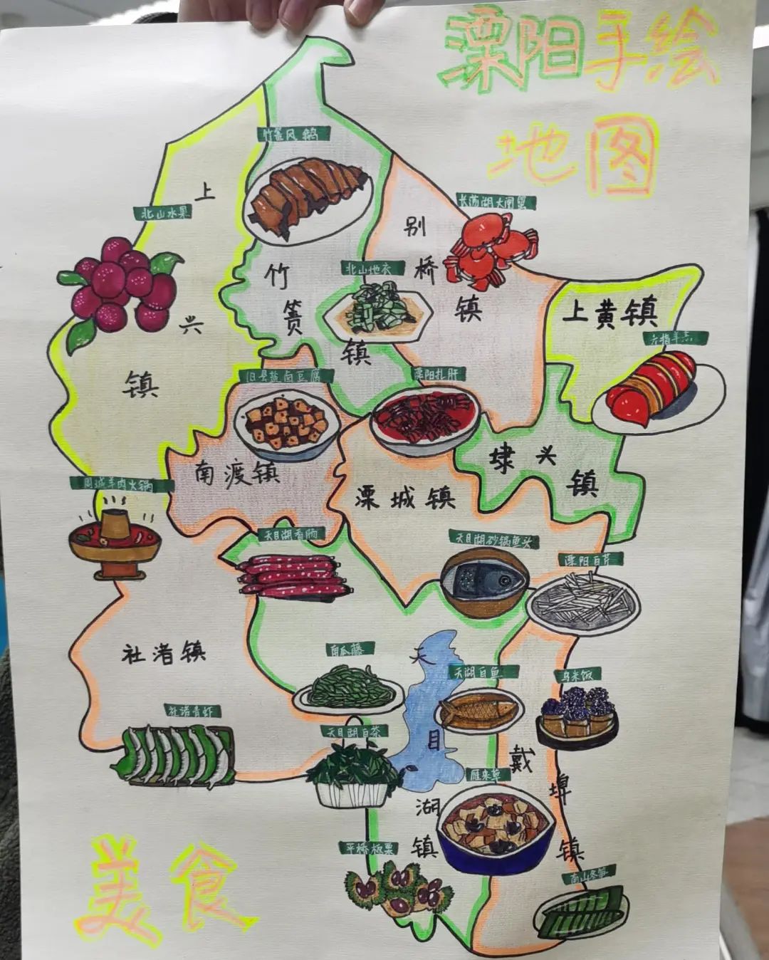 手绘家乡地图其实对于我来说,思念家乡的情感其实会更少一点,因为溧阳距离南京的距离只有高铁三十分钟。但是我选择了溧阳,而不是常州或者江苏这些被更多人知道的范围。这也是这个比赛对于我的意义。让更多的人了解我的家乡,一个不是很大,但很美好温暖依山傍水的城市。