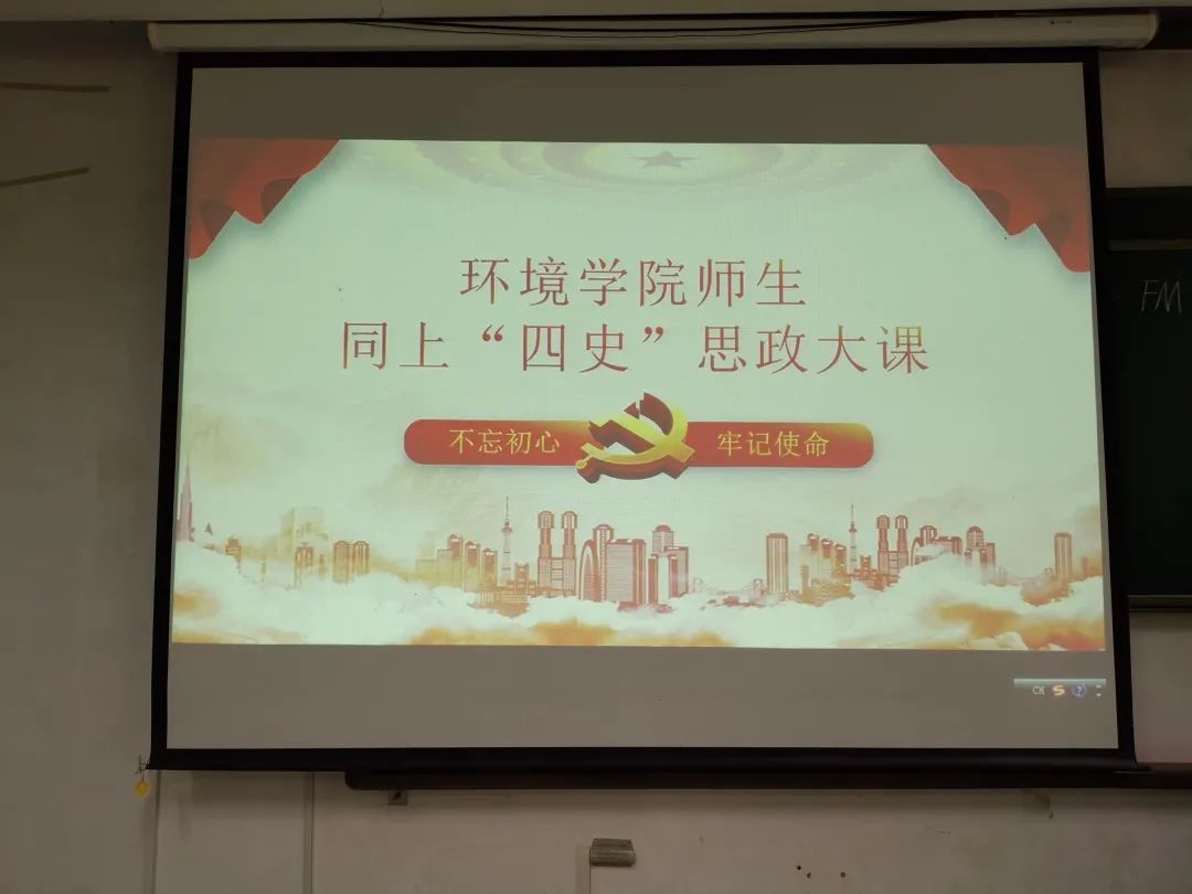 4月24日14:00,杏色 组织全院师生实时观看“四史讲堂第一讲——‘党史’思政大课”。2019级与2020级入党积极分子在致用楼117教室集体观看,其余同学也都在自习室、宿舍等地自主观看了思政课,进行了深入学习讨论。