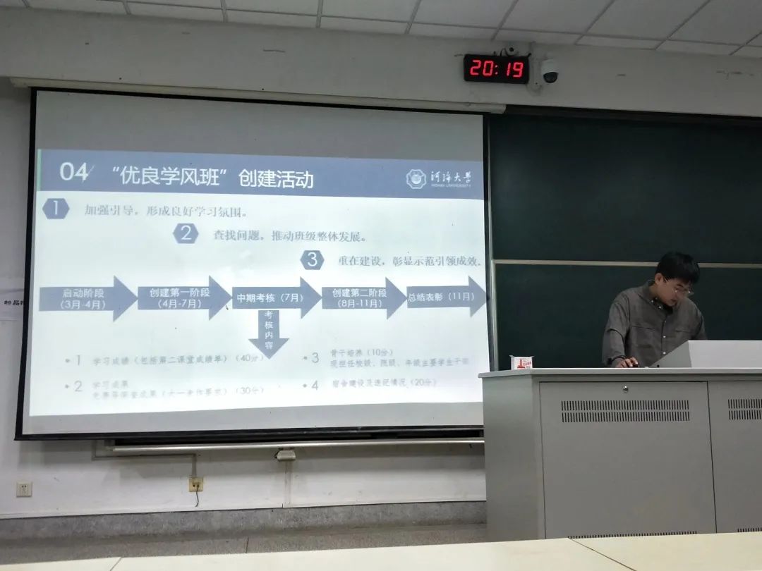本次会议,重点讲解了“优良学风班”创建活动,对申请流程以及考核内容进行了系统介绍,内容主要包括学习成绩、学习成果、骨干培养、宿舍建设及违纪情况。鼓励各班加强引导,形成良好学习氛围;查找问题,推动班级整体发展;重在建设,彰显示范引领成效。