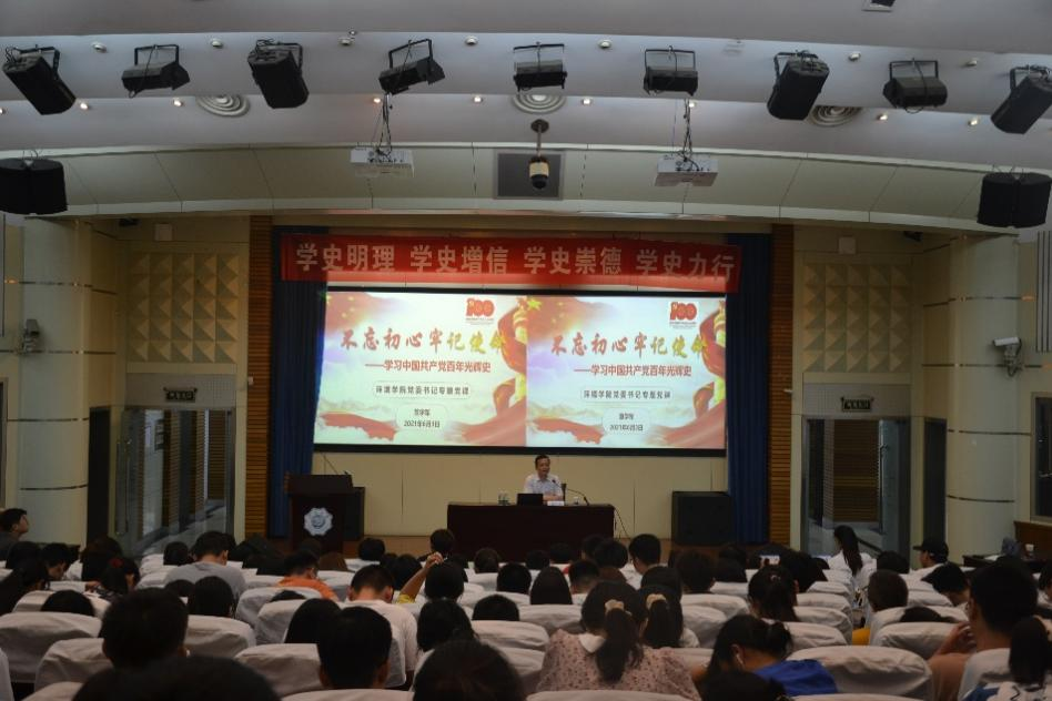 6月3日上午在江宁会议中心,杏色 党委书记笪学军以《不忘初心、牢记使命——学习中国共产党百年光辉史》为题,为杏色2020级师生讲授党史学习教育专题党课。